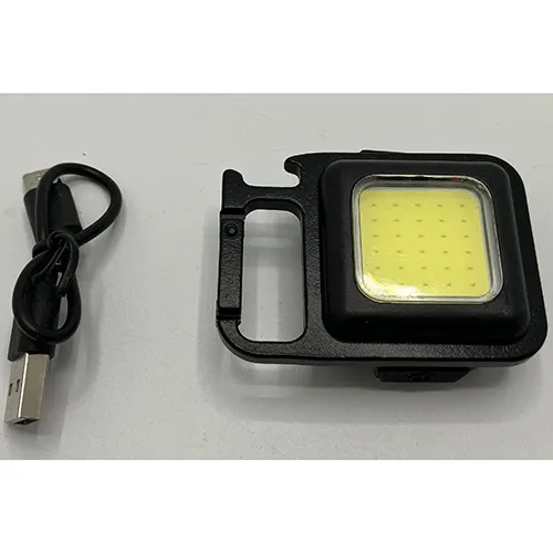 Lanternă fixată cu carabinier, de aproximativ 4×4 cm, destinată să funcționeze ca deschizător de sticle. Produs vândut online, în special prin mylar.se.