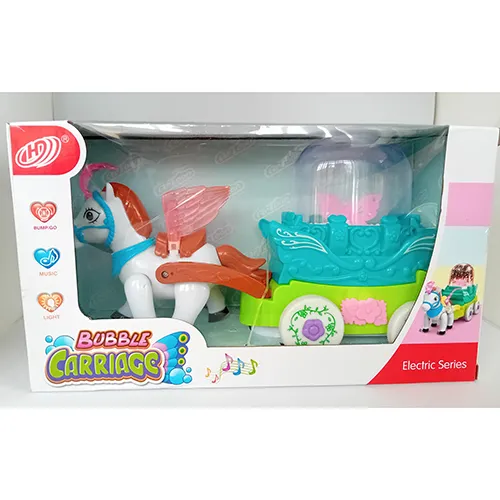 Jucărie de plastic constând dintr-un cal trăgând o trăsură.