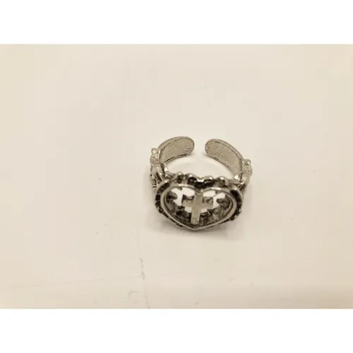 Inel de metal în formă de inimă cu o cruce în ea. Produs vândut online, în special prin intermediul Shein.