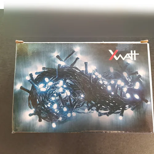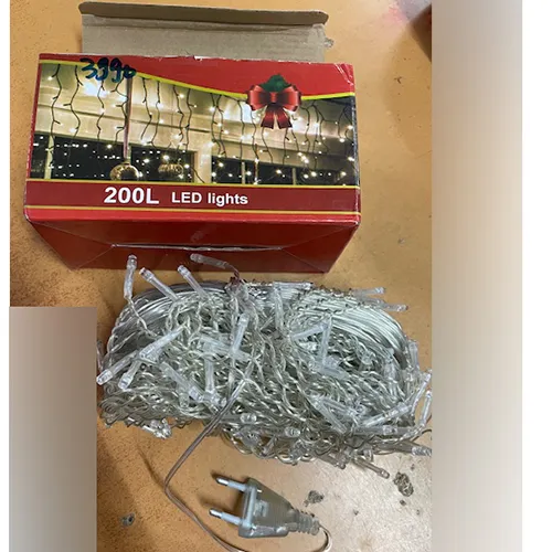 Lanț de iluminat cu lumini LED neînlocuibile, sârmă transparentă din plastic și o priză de alimentare plată.