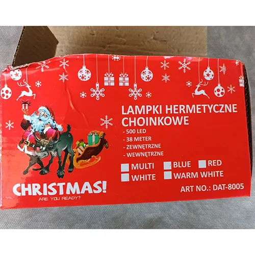 Lanț de iluminat extensibil echipat cu o unitate de comandă cu 8 funcții. Produsul conține 500 de lumini LED și are o lungime de 38m.