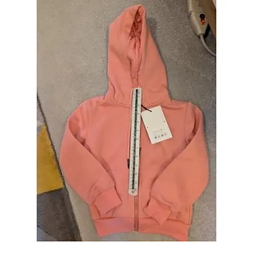 Pulover roz pentru copii, închis cu fermoar. Produs vândut online, în special prin intermediul Tiktok.