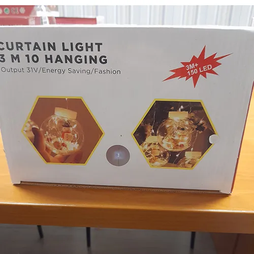 Lanț de lumină ornamental cu bile de plastic transparente care conțin 150 de surse de lumină cu LED-uri neînlocuibile.