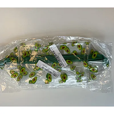 Carcasă transparentă de machiaj din plastic cu model de avocado. Produs vândut online, în special prin intermediul AliExpress (identificator unic de produs: 1005008741552206).