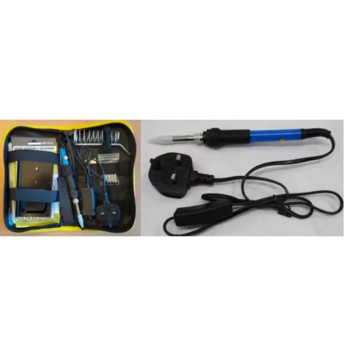 Instrument de pirografie din lemn furnizat cu un cablu de alimentare negru și dop, precum și alte atașamente. Produs vândut online, în special prin intermediul eBay (identificator unic: 145854397267).