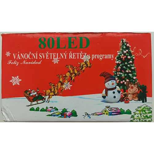 Lanț de iluminat de Crăciun cu 80 de surse de lumină cu LED-uri neînlocuibile, echipate cu o unitate electronică pentru opt efecte de iluminare diferite.