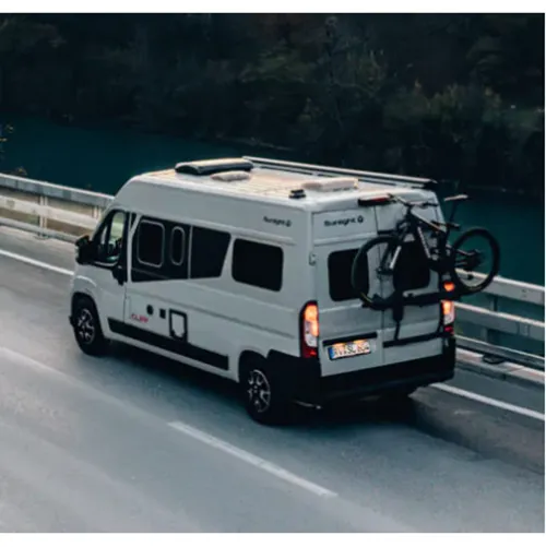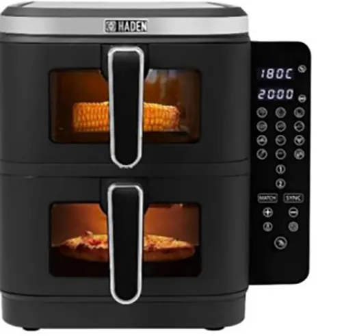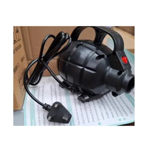 Un compresor/pompă de aer electric(ă) de culoare neagră, prevăzut(ă) cu un dop de tip „trifoi” de culoare neagră. Produs vândut online, în special prin intermediul Amazon.