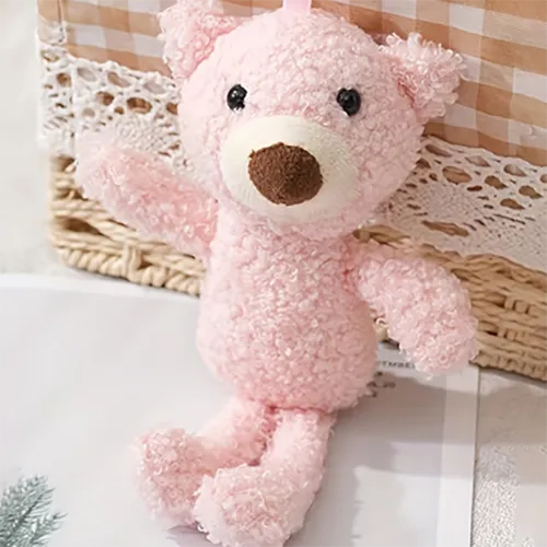 Ursuleț de pluș roz vândut în două versiuni diferite: unul cu ochi brodați și celălalt cu ochi de plastic. Produs vândut online, în special prin intermediul TEMU.