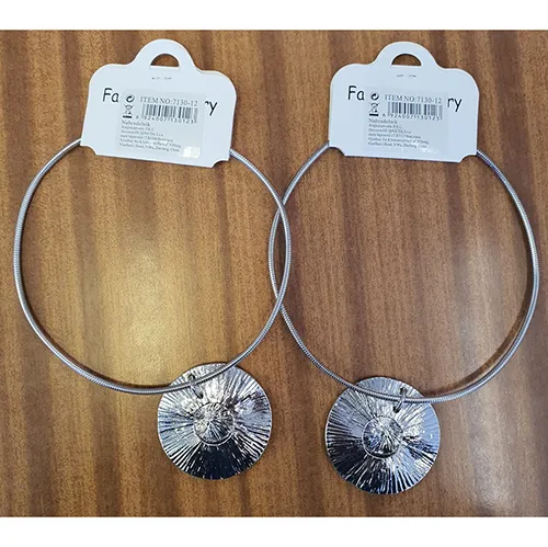 Păpușă de aproximativ 29 cm, cu accesorii din plastic, cercei din plastic de culoare argintie pe urechi, păr lung blond într-o coadă de cal, îmbrăcată într-o rochie mini și pantofi de plastic roz cu talpă înaltă și tocuri.