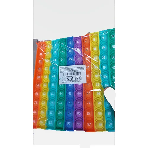 Jucărie Pop-It fidget, realizată din plastic moale în diferite culori, cu numerele de la 1 la 100 pe ele. Livrat cu un cârlig de plastic negru dur.
