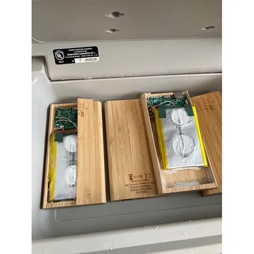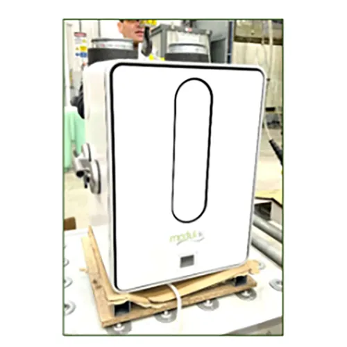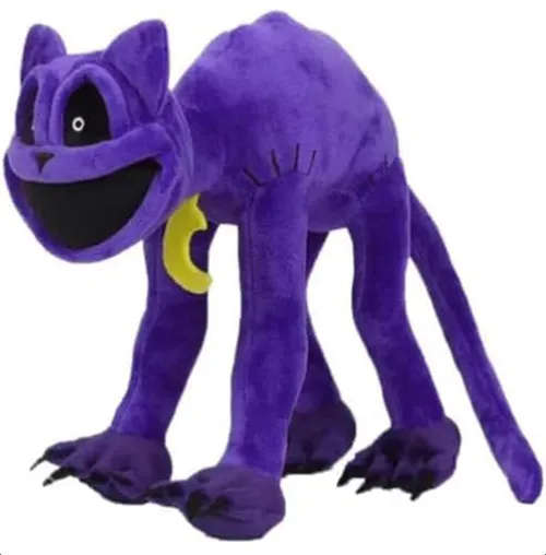 Jucărie moale în formă de monstru violet, de 40 cm, cu un fermoar care oferă acces la materialul fibros de umplutură.