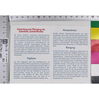 Șase bureți naturali maro de diferite forme, destinați utilizării menstruale. Produs vândut online, în special prin intermediul www.bloodmilla.de.