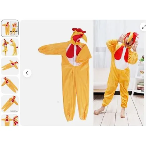 Costum fantezie-rochie în formă de pui, destinat copiilor, dimensiune 126 cm. Produs vândut online, în special prin intermediul eBay (identificator unic de produs: 196429121554).