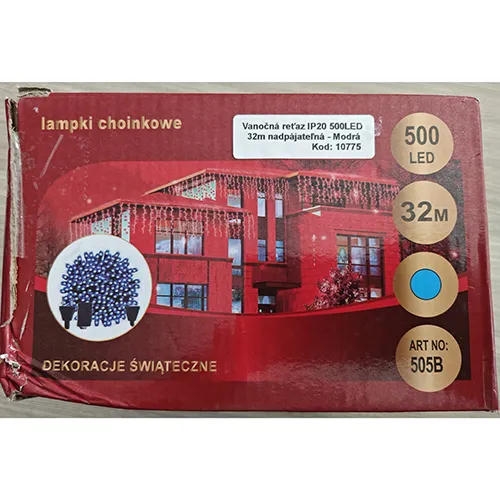 Lanț de iluminat conceput pentru interconectare, care conține 500 de surse de lumină cu LED-uri neînlocuibile și un dispozitiv pentru schimbarea modurilor de iluminare. Produs vândut online, în special prin ledziarovka.eu