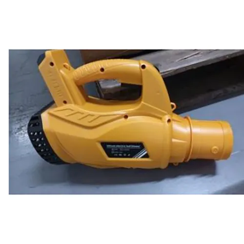 Suflantă de frunze galbenă, fără fir, cu baterie litiu-ion și curea de umăr.
