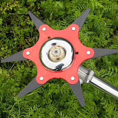 Atașament pentru mașini de tăiat perii, destinate tunderii și tăierii marginilor de gazon sau a altor tipuri de vegetație. Atașamentul de tăiere cuprinde șase cuțite mobile care pot fi utilizate pentru tăiere atunci când se rotesc la viteză mare. Produs vândut online, în special prin intermediul AliExpress (număr de identificare: 1005007309770395).