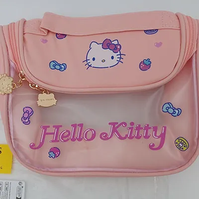 Geantă cosmetică roz cu fereastră transparentă. Produs vândut online, în special prin intermediul Temu (identificator de produs: 601100048460191).