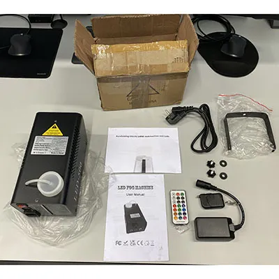 Mașină de ceață pentru DJ mobili, petreceri, locații mici cu receptor RF intern (încorporat în driverul intern cu LED-uri) și un receptor RF extern (prin intermediul unei combinații de prize XLR cu 3 pini) și două telecomenzi. Produs vândut online, în special prin intermediul djlicht.nl.