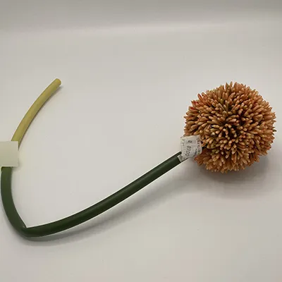 Decor de plastic în formă de floare allium giganteum cu o tulpină verde-galbenă și un bec portocaliu de foc. Dimensiune 65 cm.