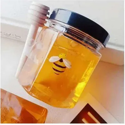 Mâzgă galbenă lipicioasă, 200 ml, cu o albină de plastic. Produs vândut online, în special prin intermediul Temu.