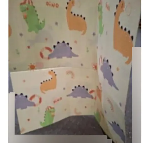 Playmat cu dinozauri portocalii, violete și verzi.