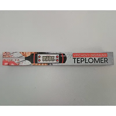Termometru digital cu afișaj LCD și patru butoane roșii. Produs vândut online, în special prin intermediul www.nay.sk.
