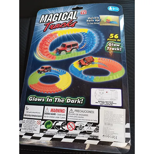 Jucărie din plastic acționată de baterii, sub forma unei mașini prevăzute cu o pistă din plastic, baterii ușoare și baterii AA.