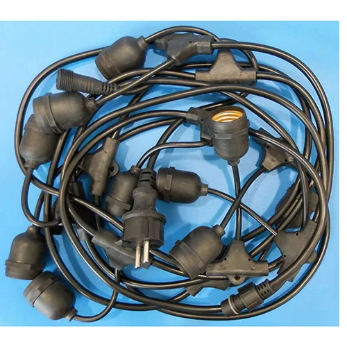 Lanț de iluminat extensibil decorativ cu cuplă detașabilă, care conține 10 bucăți, suporturi pentru lămpi E27 și 5 metri lungime. 16A, 250V ~ IP4.