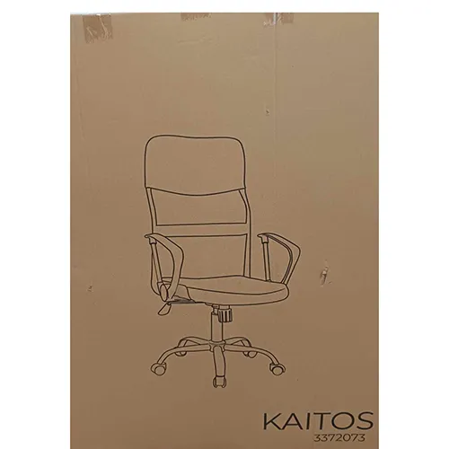 Scaun de birou negru cu cotiere reglabile, un scaun textil și o tetieră acoperită cu piele neagră. Cadrul scaunului este realizat din plastic negru combinat cu accesorii cromate. Produs vândut online, în special prin merkurymarket.sk.