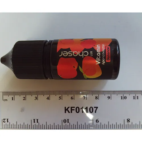 Cartuș de culoare închisă cu lichid care conține nicotină pentru țigări electronice.