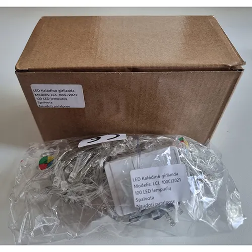 Lanț de iluminat cu 100 de lămpi cu LED-uri, tensiune nominală de 250 VAC și curent nominal de 2,5 A.